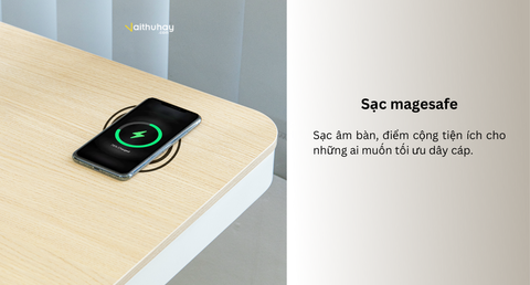 Một sự tiến bộ về công nghệ của 9SPACE ALL IN ONE chính là tích hợp công nghệ sạc không dây ngay trên mặt bàn. Vô cùng tiện ích khi bạn cần cung cấp nguồn điện ngay cho điện thoại di động của mình mà không có ổ cắm hoặc đế sạc ở cạnh bên. Hơn hết khi ngày này xu hướng tối giản dây kết nối ngày càng phổ biến thì đây thật sự là một điểm cân nhắc khi lựa chọn chiếc bàn nâng hạ này.