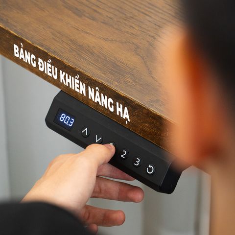 Bàn nâng hạ chiều cao 9SPACE tích hợp 2 nút điều khiển đơn giản: lên / xuống. Các nút sử dụng bằng cơ học cho cảm giác chạm vào đặt ngay cạnh bàn giúp bạn có thể nâng hạ bàn một cách nhanh chóng mà không phải tốn quá nhiều thời gian. Ngoài ra còn hỗ trợ 3 bộ nhớ vị trí độ cao để lưu trữ khi sử dụng nâng hạ