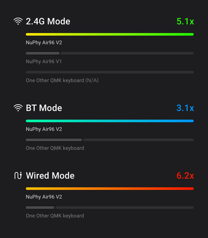Hiệu suất kết nối 2.4Ghz của Air96 V2 so với phiên bản V1