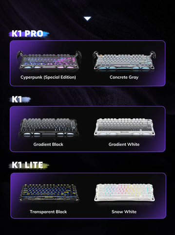 Tương tự phiên bản K1 Pro, phiên bản K1 này hỗ trợ hot-swapping và cho phép thay thế các switch 3 chân và 5 chân.