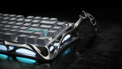 Kim loại chảy lên và bao quanh các phím, quấn chúng trong những nhánh thủy ngân lấp lánh, chuyển động dưới một hào quang rực rỡ của sức mạnh. Hai bộ Stabilizer (Stab) của GravaStar giúp cố định và cân bằng các phím.