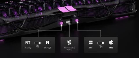 Bàn phím tích hợp công tắc vật lý chuyển nhanh giữa chế độ chơi game, làm việc, và hệ điều hành Win/Mac. Không cần phần mềm, không mất thời gian cấu hình, sẵn sàng cho mọi tình huống chỉ bằng một lần gạt.