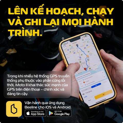 Ứng dụng Beeline giúp bạn dễ dàng lập kế hoạch lộ trình và chia sẻ chuyến đi một cách nhanh chóng và thuận tiện. Bạn có thể sử dụng app trên cả hai nền tảng iOS và Android để lên lịch trình di chuyển, sau đó đồng bộ ngay lập tức với thiết bị Moto II qua kết nối Bluetooth ổn định.