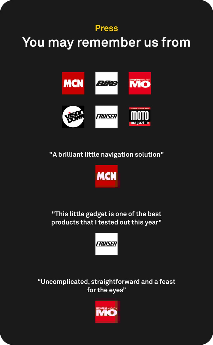 - “Một giải pháp điều hướng nhỏ gọn nhưng cực kỳ thông minh. - MCN (Motorcycle News)