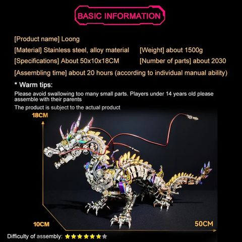 Mô Hình DIY Rồng Kim Loại 3D Trung Hoa - 1300 Mảnh Lắp Ghép