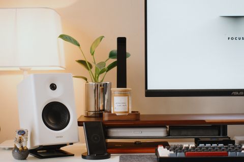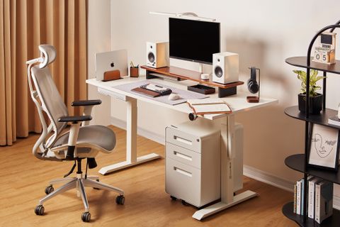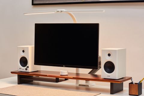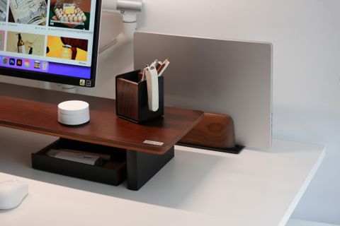 - Bộ sản phẩm bao gồm kệ màn hình, giá đỡ laptop, giá đỡ tai nghe, khay đựng đồ, cốc đựng bút tiện nghi.
