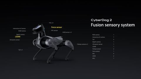 CyberDog 2 được trang bị tới 19 cảm biến tiên tiến, bao gồm camera RGB, cảm biến LiDAR, ToF, camera độ sâu, micro đa hướng cùng nhiều loại cảm biến khác, cho phép nó “cảm nhận” thế giới một cách toàn diện về thị giác, thính giác và xúc giác.