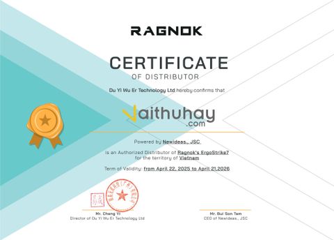 Vaithuhay chính thức nhận được chứng nhận phân phối các dòng sản phẩm của Ragnok tại Việt Nam. Với sự hợp tác này, cam kết Vaithuhay sẽ đại diện thương hiệu Ragnok phân phối rộng rãi các sản phẩm đến với người dùng tại thị trường Việt Nam. Với sự an tâm tuyệt đối về chất lượng sản phẩm và chính sách bảo hành bởi Vaithuhay.