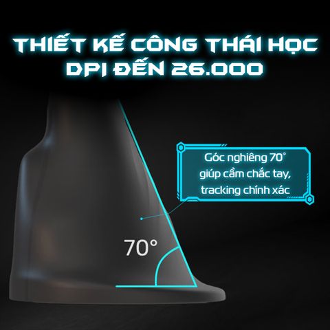 - Góc nghiêng 70° tối ưu – Thiết kế giúp tay cầm tự nhiên, đặc biệt phù hợp với người có bàn tay vừa và lớn.