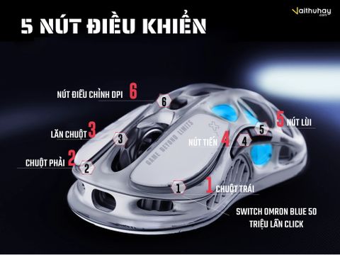 - Số nút: Số nút trên chuột gaming có thể dao động từ 2 đến 12. Tiêu chuẩn hầu hết đều có 5 phím. Các nút này có thể được sử dụng để thiết lập các phím tắt, giúp người dùng thao tác nhanh hơn trong game.