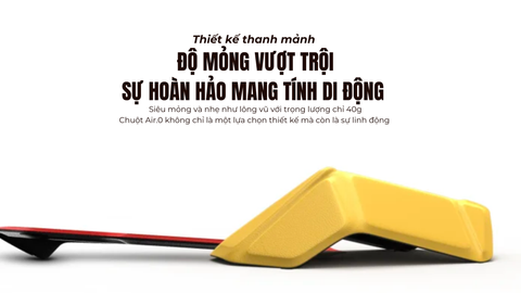 Với trọng lượng chỉ 40 gram và độ dày 4.5mm*, Air.0 là lựa chọn tối ưu cho những ai thường xuyên di chuyển. Sự kết hợp hoàn hảo giữa thiết kế siêu nhẹ và mỏng giúp chuột trở nên nhỏ gọn mà không kém phần nổi bật so với chuột truyền thống. Thiết kế gọn nhẹ không chỉ mang lại sự tiện lợi mà còn đảm bảo sự linh hoạt trong mọi tình huống.