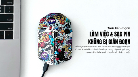 Air.0 được trang bị cổng sạc USB-C, giúp người dùng dễ dàng sạc pin mà không cần phải thay pin mới. Chỉ với một lần sạc đầy, bạn có thể sử dụng chuột liên tục trong 3 tháng, giúp tiết kiệm thời gian và đảm bảo công việc không bị gián đoạn.