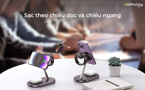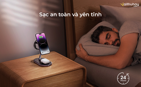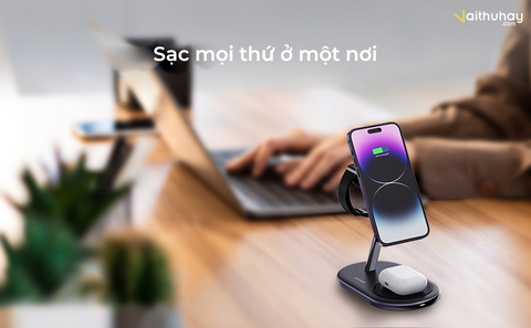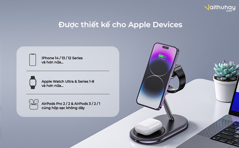 Công suất sạc tối đa cho các thiết bị lần lượt là: 7.5W cho iPhone 12 – 14 Series, 3W cho Apple Watch, 5W cho Airpods