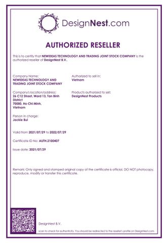 Giấy chứng nhận phân phối tất cả các sản phẩm thương hiệu DesignNest Hà Lan chính hãng, giá tốt nhất tại Việt Nam của vaithuhay