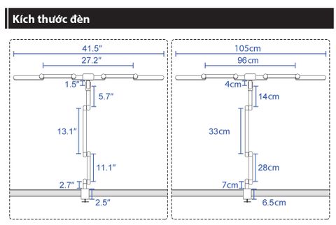 | Vùng chiếu sáng rộng | 105cm |
