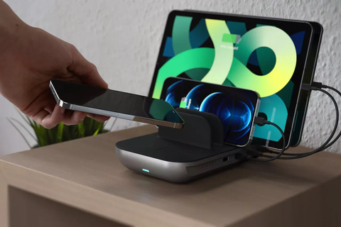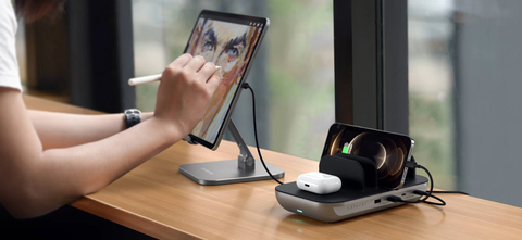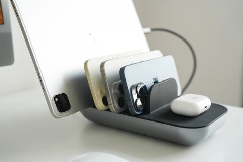 Bạn có thể dùng Dock sạc 5 in 1 kèm sạc không dây của Satechi để sạc nhiều thiết bị từ điện thoại đến máy tính bảng cũng như tai nghe không dây.