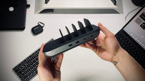 Dock sạc 5 in 1 Satechi cung cấp nguồn điện đến 5 thiết bị USB cùng một lúc và cả khe sạc không dây Qi (hiệu năng lên đến 10W), hai cổng USB-C PD (tối đa 20W mỗi cổng) và hai cổng USB-A (12W mỗi đầu sạc).