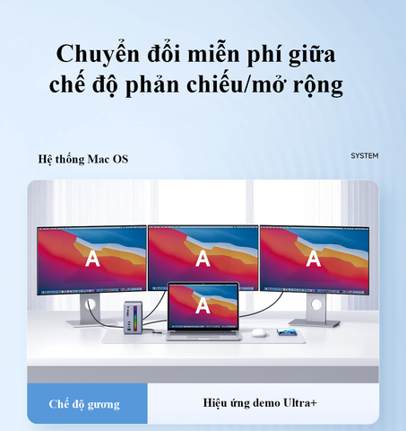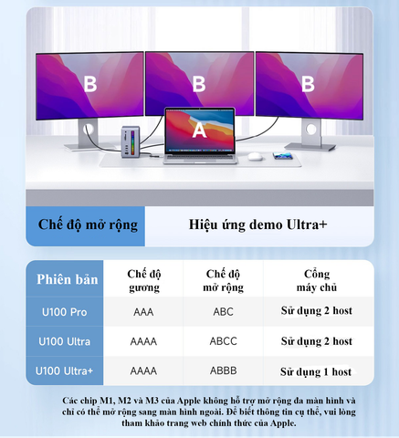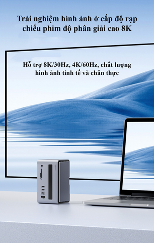 - Hỗ trợ đa màn hình 4K@60Hz: Kết nối đồng thời 2 màn hình ngoài với độ phân giải sắc nét, tối ưu hiệu suất làm việc
