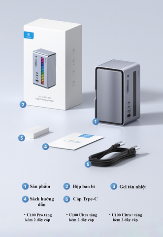 Dock Station Hagibis U100Pro - Kết Nối USB-C, Hỗ Trợ 8K, Sạc PD 100W