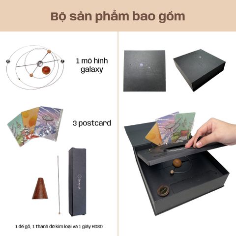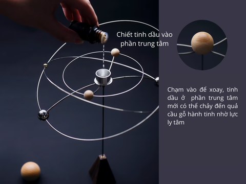 Đây được xem là điểm lạ và ấn tượng của sản phẩm so với các khuếch tán tinh dầu khác. Trong một sản phẩm khuếch tán tinh dầu với mô hình ngân hà bao gồm phần trung tâm - nơi các tinh dầu được chiết xuất vào, hòa quyện với nhau dựa trên nguyên tắc của bộ nối. Khi khuếch tán bị lây động do các tác động bên ngoài và mất cân bằng, các quả cầu gỗ sẽ tiếp xúc và hấp thụ dầu thơm để phát tán và tỏa hương.