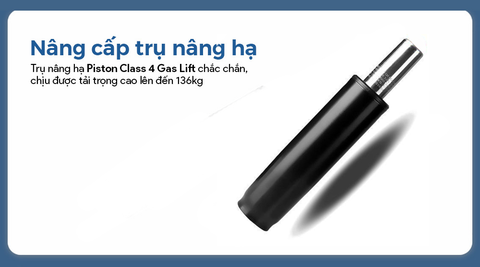 Trụ nâng hạ Piston Gas Lift thế hệ thứ 4 - Khả năng chịu tải cao lên tới 150 kg, đồng thời giữ thăng bằng tuyệt đối khi ngồi và ngả lưng.