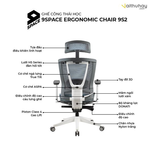 VÌ SAO NÊN CHỌN GHẾ CÔNG THÁI HỌC 9SPACE - ERGONOMIC CHAIR 9S2