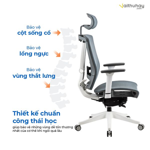- Thiết kế chuẩn công thái học bảo vệ toàn diện cột sống