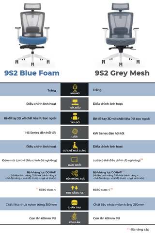 Sự khác biệt giữa ghế 9S2 Blue Foam và 9S2 Grey Mesh