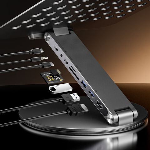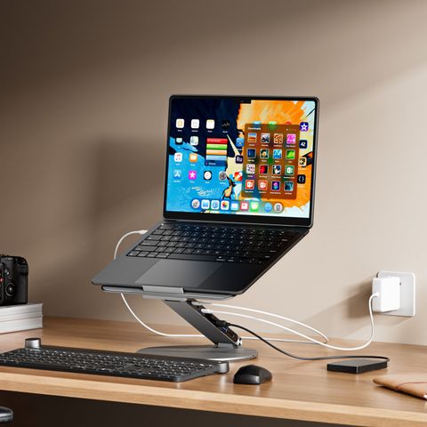 Giá đỡ laptop Kuxiu - Hub đa cổng tích hợp, Sạc nhanh PD 3.0, Giữ cho không gian làm việc gọn gàng