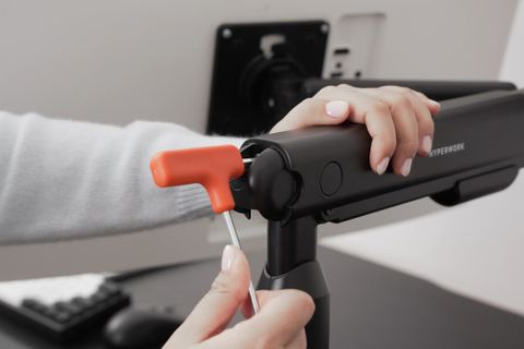 Các mẫu arm màn hình của HyperWork hầu hết đều đã được trang bị tính năng điều chỉnh kháng lực trực tiếp trên thân arm với các dòng như Alpha Pro, Alpha, VisionX, T9 Pro II Series, P1 Dual. Cách thức thực hiện như sau: