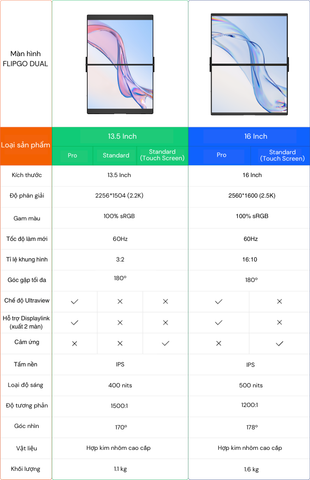 - Nếu anh em cần một bộ màn hình phụ gọn nhẹ thì 13.5 inch Pro là sự lựa chọn tối ưu nhất.