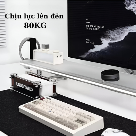 - Kết cấu chắc chắn, chịu lực tốt: Khung hợp kim nhôm Acrylic + giá đỡ kim loại giúp chịu tải tốt, an toàn khi đặt màn hình, laptop, hoặc các thiết bị khác.