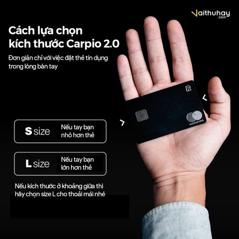 Kê tay công thái học Carpio 2.0 có kích thước để bạn lựa chọn là S và L. Bạn có thể đo lòng bàn tay của mình bằng cách sử dụng thẻ tín dụng để chọn kích thước sản phẩm phù hợp mà không cần dùng đến thước dây.