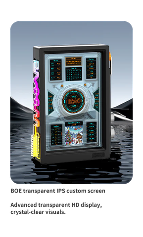 Màn hình IPS trong suốt BOE: Màn hình HD trong suốt được tùy chỉnh từ BOE, mang đến hình ảnh sắc nét và sống động Cấu trúc kính cường lực ba lớp: Thiết kế với ba lớp kính cường lực giúp tăng độ bền và tạo hiệu ứng trong suốt ấn tượng Bộ nhớ trong 64GB không tốn phí đám mây: Tích hợp chip lưu trữ dung lượng lớn, cho phép lưu trữ thoải mái mà không cần dùng dịch vụ đám mây Dải đèn viền RGB tạo hiệu ứng ánh sáng: Hệ thống đèn viền RGB tích hợp mang đến không gian hiển thị sống động và thu hút Đèn RGB đồng bộ theo nhạc: Hiệu ứng ánh sáng RGB thông minh tự động thay đổi theo giai điệu, tăng tính giải trí và thẩm mỹ cho không gian - Kết nối Wi-Fi 5 ổn định & bảo mật đạt chuẩn TUV: Trang bị chip Wi-Fi 5 cho tốc độ kết nối nhanh, đồng thời đảm bảo quyền riêng tư với chứng nhận TUV quốc tế