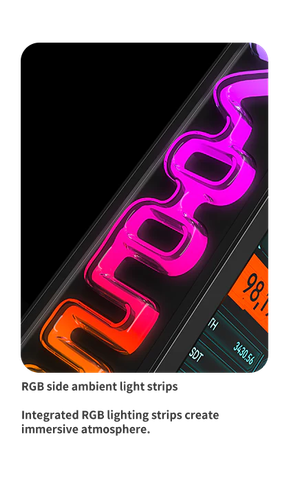Hệ thống đèn RGB tích hợp dọc khung viền tạo nên hiệu ứng ánh sáng sống động, tăng tính thẩm mỹ cho bất kỳ góc làm việc hay không gian trang trí nào. Ánh sáng lan tỏa nhẹ nhàng, phù hợp mọi phong cách nội thất.