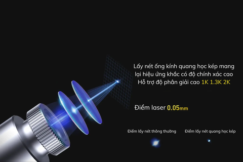 Quá trình lấy nét dễ dàng, chân đế có thể điều chỉnh được, nhấn lên/xuống để lấy độ dài tiêu cự chính xác