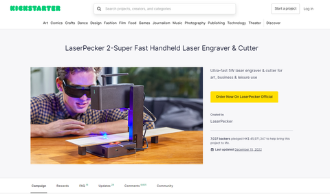 Là chiến dịch đâù tiên của hãng Laser Pecker trên Kickstarter và đạt được sự công nhận về chất lượng từ rất nhiều bên cũng như người dùng.