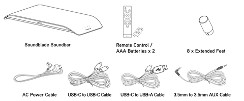- Cổng AUX 3.5mm: Kết nối với các thiết bị âm thanh truyền thống như máy nghe nhạc MP3, đầu CD hoặc TV thông qua cổng đầu vào phụ trợ 3.5mm. Soundblade đảm bảo bạn có thể kết nối với mọi thiết bị âm thanh yêu thích của mình.