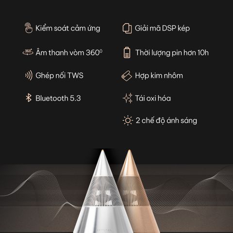 - Cả hai loa đều có thiết kế vòm 360°, mang lại trải nghiệm âm thanh đa hướng.