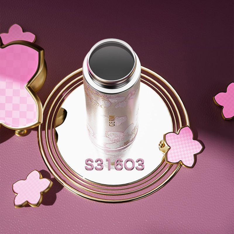 Ly giữ nhiệt inox 300ml GERM GE-24SS-DB82 – Hoa Anh Đào tinh tế, giữ nhiệt vượt trội