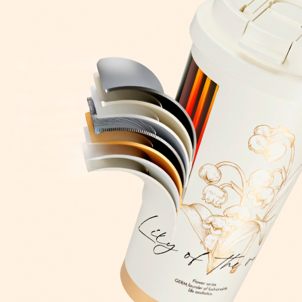 Ly giữ nhiệt inox GERM GE-23AW-B47 500ml Hoa Huệ Thung Lũng – Giữ nhiệt lâu, nắp 3 trong 1 tiện lợi