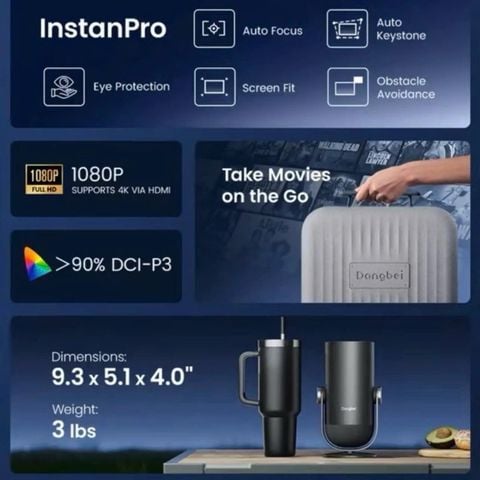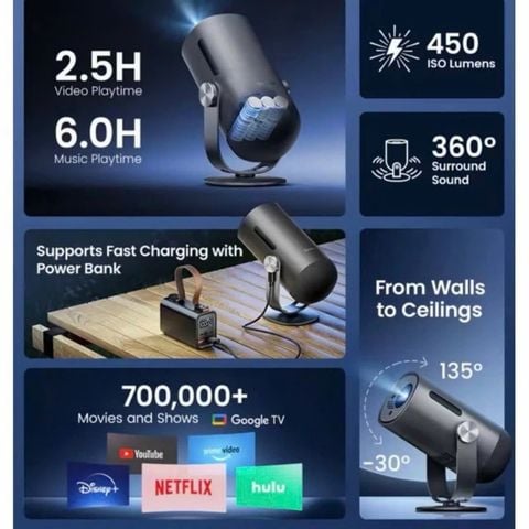 Máy chiếu di động Dangbei Freedo | bản quyền Google TV, Netflix, 450 ISO Lumens nhỏ gọn