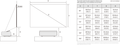 | Kích thước hình ảnh | 90" - 150" |