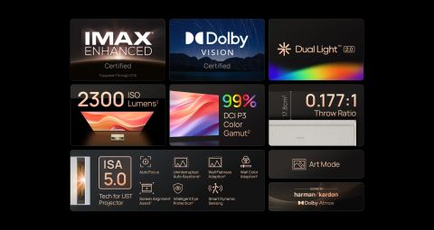 - Trải nghiệm hình ảnh đáng chú ý: Tận hưởng độ sáng vô song ở mức 2300 ISO lumen và tỷ lệ tương phản đáng kinh ngạc 1.000.000:1 cho hình ảnh sắc nét, sống động nhờ công nghệ Dual Light 2.0.