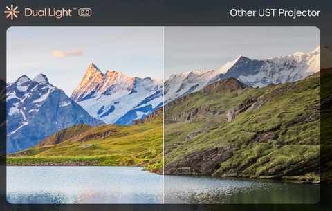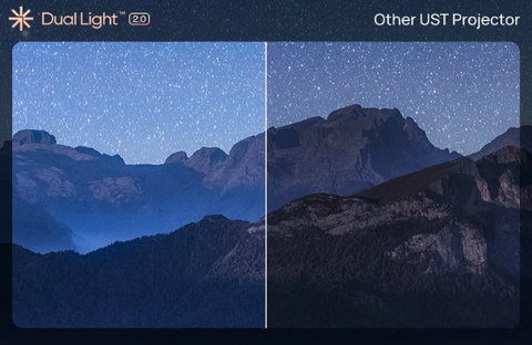 "Chuẩn bị đắm chìm hoàn toàn vào trải nghiệm điện ảnh với máy chiếu UST hiệu suất cao của XGIMI. Kết hợp quang học DLP 4K với nguồn laser 'Dual Light 2.0' được đánh giá ở mức 2300 ISO Lumen, AURA 2 quyến rũ với hiệu suất hình ảnh tuyệt đẹp. Thể thao, trò chơi và phim/TV đều được hưởng lợi từ độ tương phản rộng, chi tiết sắc nét và xử lý màu sắc đặc biệt, và độ sáng đầu ra của máy rất phù hợp để xem vào ban ngày cũng như các buổi chiếu thiếu sáng."