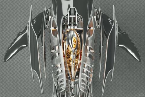 Mobula lấy cảm hứng từ loài cá đuối Mobula Manta Ray – một sinh vật biển có khả năng bay khỏi mặt nước, với sải cánh rộng và dáng bơi mềm mại. Thách thức của đội ngũ thiết kế là tái tạo chuyển động uyển chuyển của Mobula trên một mô hình cơ khí thuần kim loại. Và họ đã làm được!