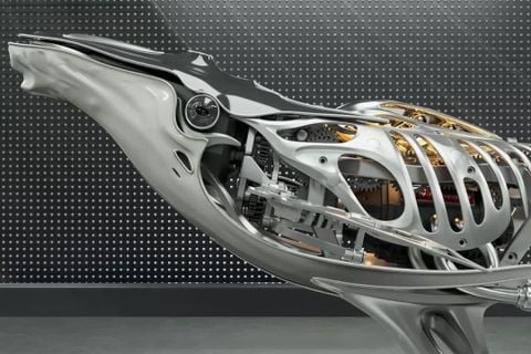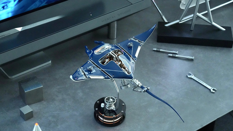 Humpack Whale mô phỏng hoàn hảo chuyển động của cá đuối thông qua hệ thống bánh răng và động cơ truyền động, giúp vây cá lướt qua không gian một cách nhịp nhàng, đầy tính nghệ thuật. Hơn 300 linh kiện được tinh chỉnh chính xác để tái tạo từng cử động mềm mại, mang đến trải nghiệm thị giác độc đáo.