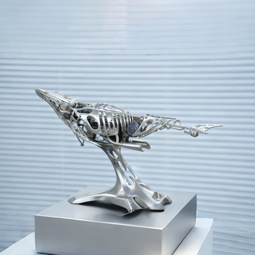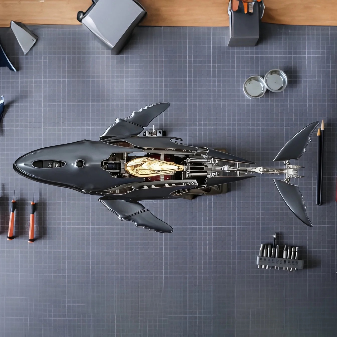 Với hơn 300 linh kiện kim loại cao cấp, Mô hình cá voi tái hiện chuyển động vươn mình đầy uy lực của cá voi thông qua hệ thống bánh răng, đòn bẩy và trục cơ học tinh xảo. Chỉ với một nút bấm, toàn bộ cấu trúc bên trong vận hành nhịp nhàng, tạo nên hiệu ứng chuyển động chân thực và mê hoặc.