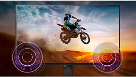 Cặp loa stereo chất lượng cao được tích hợp trong thiết bị màn hình có thể được định vị theo nhiều cách khác nhau. Loa có thể hướng ra mặt trước hoặc ẩn đi theo hướng xuống dưới, lên trên, ra phía sau, v.v., tùy thuộc vào kiểu dáng và thiết kế của thiết bị.