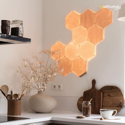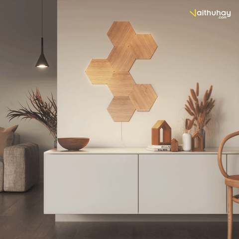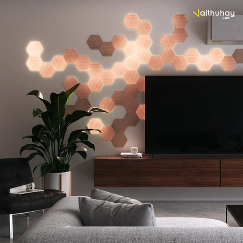 Những ô đèn với chất liệu từ hạt Laminate cao cấp và hạt gỗ sẽ gợi lên cảm giác thanh lịch và gần gũi. Thiết kế của Nanoleaf Elements là sự hài hòa hoàn hảo giữa nghệ thuật và công nghệ, vừa là tác phẩm nghệ thuật treo tường đẹp mắt, vừa là thiết bị chiếu sáng thông minh. Gam màu gỗ ấm áp cả khi bật và tắt, kết hợp với sắc xanh của cây kiểng chính là sự lựa chọn không thể thích hợp hơn cho những ai muốn tìm cảm giác thanh bình và hoà hợp với thiên nhiên trong ngôi nhà của mình.